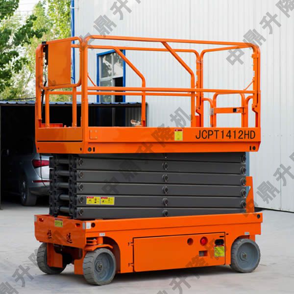 自行走剪式升降平臺是電動升降,電動行走,結構穩定,安全性高,維護方便,外觀美麗的一種全自動升降平臺。他主要是用來高空維修,安裝,清潔等高空作業,非常受中小企業的喜愛。中鼎升降機械近二十年一直專注于升降平臺的研究開發,技術方面已經非常成熟。伴隨著人文科技的發展,特別是江南沿海地區,對于升降平臺技術層次要求極高,對于尺寸,配件,油缸,驅動輪,結構等都有一些精確的要求。