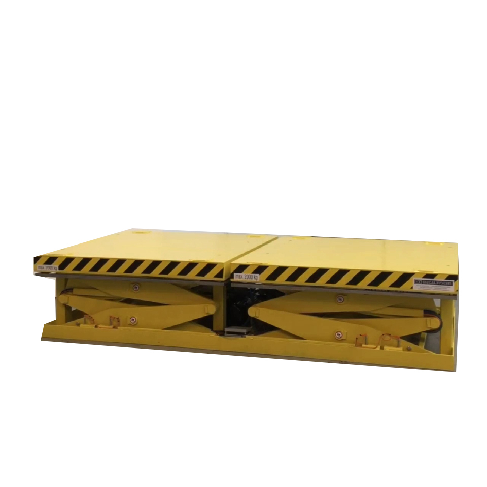 固定式聯(lián)動(dòng)組合升降平臺(tái)兩組平臺(tái)可以單獨(dú)升降,也可以通過自動(dòng)插鎖裝置實(shí)現(xiàn)同步升降,定位精度在3mm以內(nèi)。