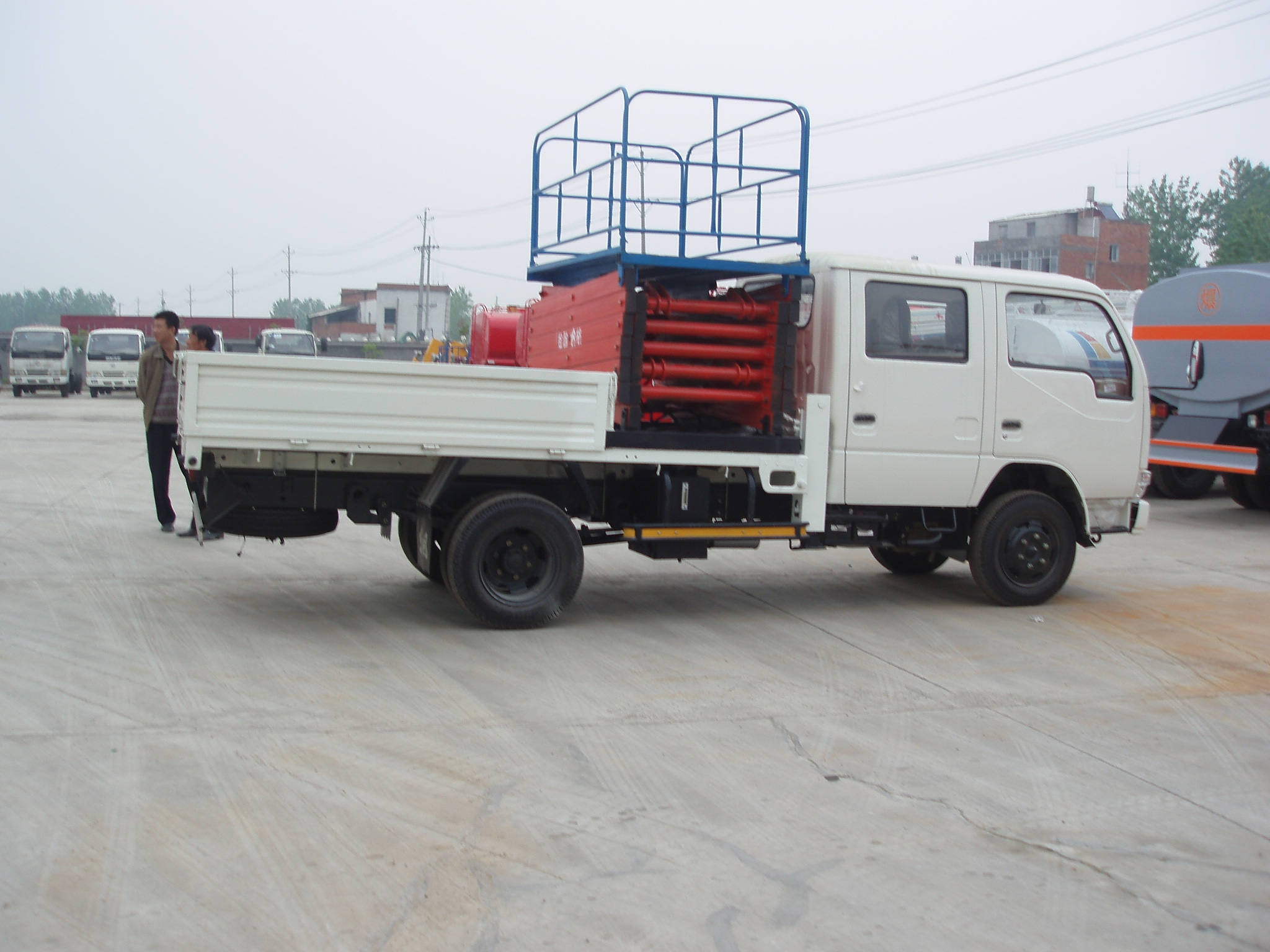 本產(chǎn)品是由高空作業(yè)平臺(tái)與電瓶車或汽車改裝的高空作業(yè)設(shè)備。