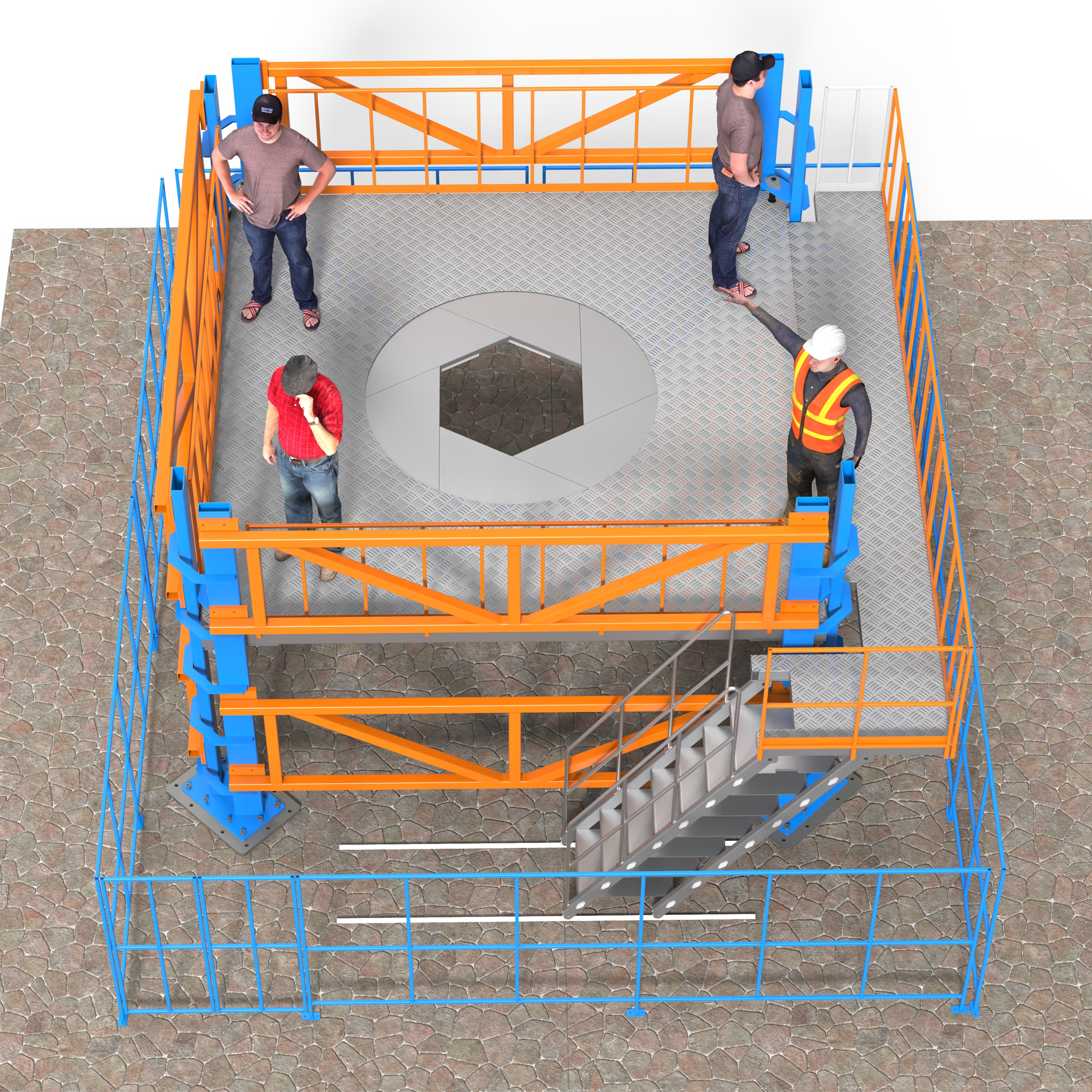 安全作業設計:平臺配置防護欄、人員走離區、帶防墜裝置的爬梯,保障操作人員在高處作業時的安全性。