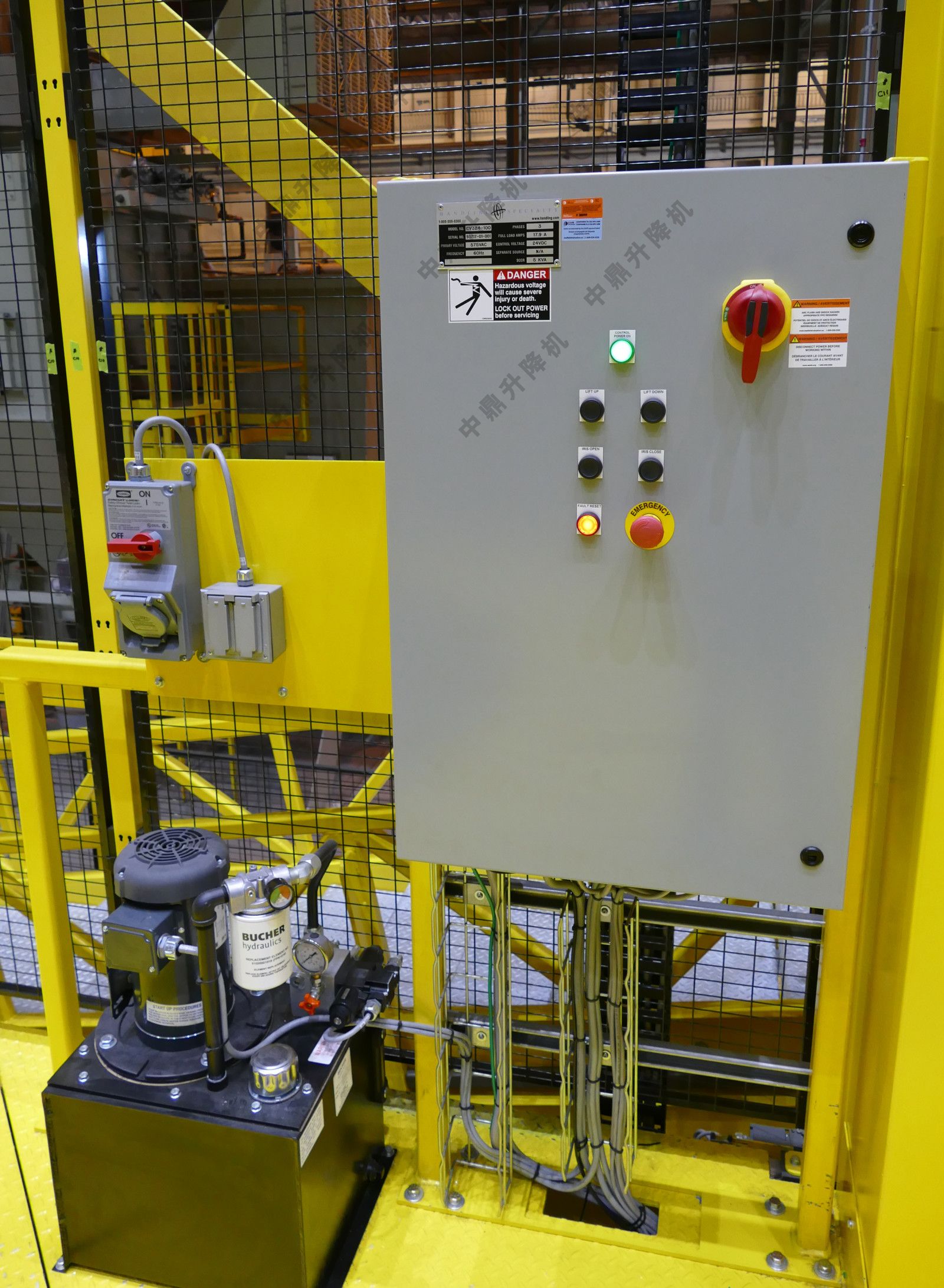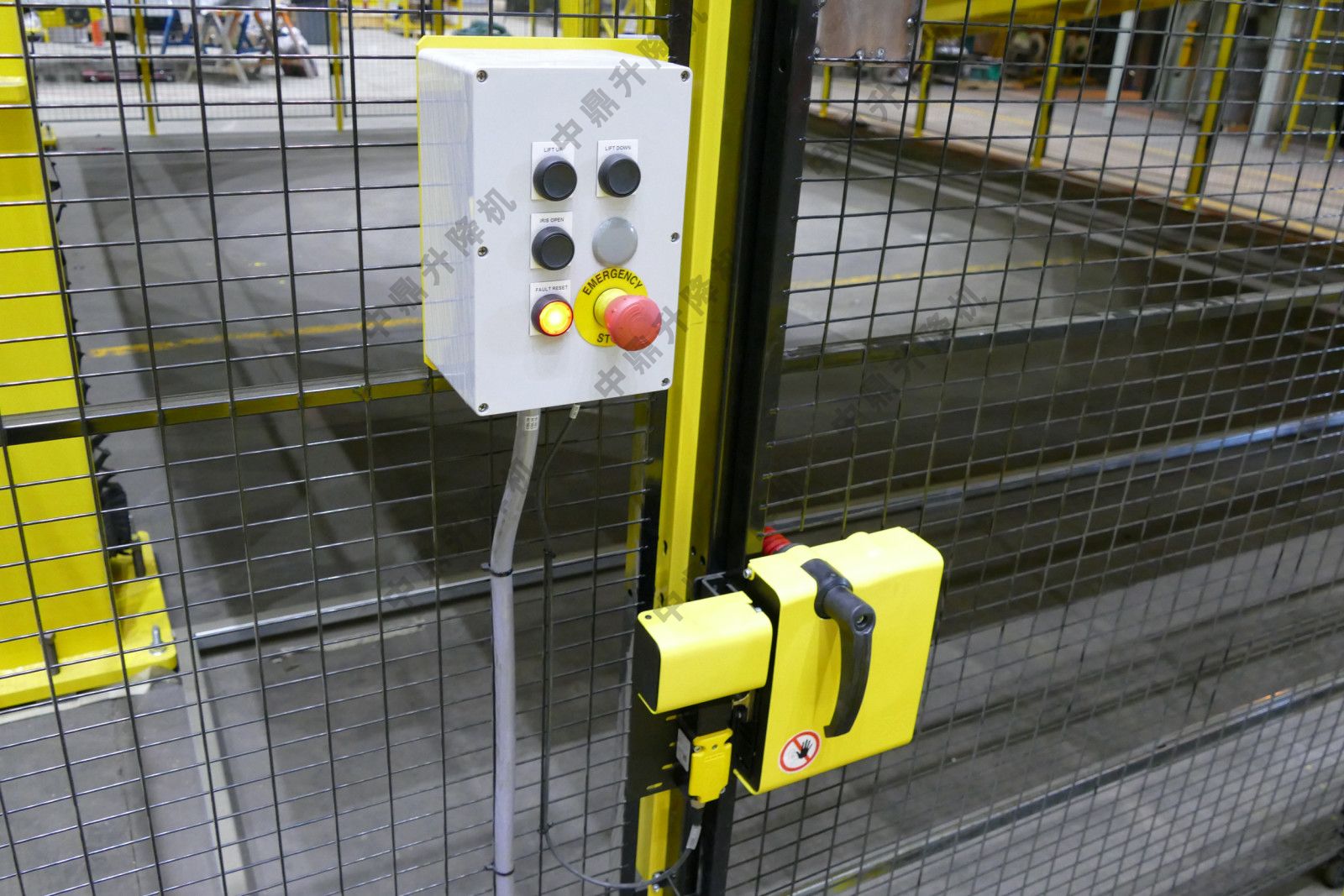 操作員控制面板位于平臺上,使技術人員能夠在工作時輕松更改高度和寬度。垂直裝配平臺由2.3米高的防護裝置包圍,地板上安裝了石墨黑網。同樣的防護裝置排列在平臺本身上。防護推拉門上的鎖定機制增加了在高空作業時的安全機會。墜落安全開關和限位開關還可以保護員工和產品免受傷害。